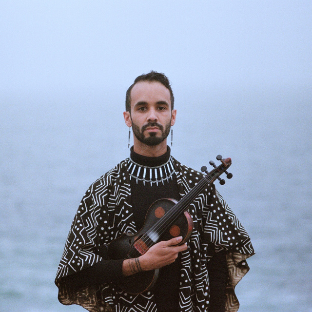 Jake Blount (pronounced: blunt) is an award-winning scholar and performer of Black folk music based in Providence, RI. Initially recognized for his skill as a string band musician, Blount has charted an unprecedented, Afrofuturist course on his pilgrimage through sound archives and song collections. In his hands, the banjo, fiddle, electric guitar and synthesizer become ceremonial objects used to channel the insurgent creativity of his forebears. From transfixing solo sets to full-band festival appearances complete with crowd-surfing and ecstatic chants, Blount’s performances - like his recent Smithsonian Folkways releases, symbiont (2024) and The New Faith (2022) - seamlessly merge centuries-old traditional songs with the trappings and techniques of modern Black genres. This “genrequeer” approach to the traditions has earned his music a place in the very same archives from which he extracts his repertoire. In defiance of genre categories, revisionist histories and linear time, Blount fashions an “Afrofuturist folklore” that disintegrates the boundaries between acoustic and electric, artist and medium, and ancestor and progeny.