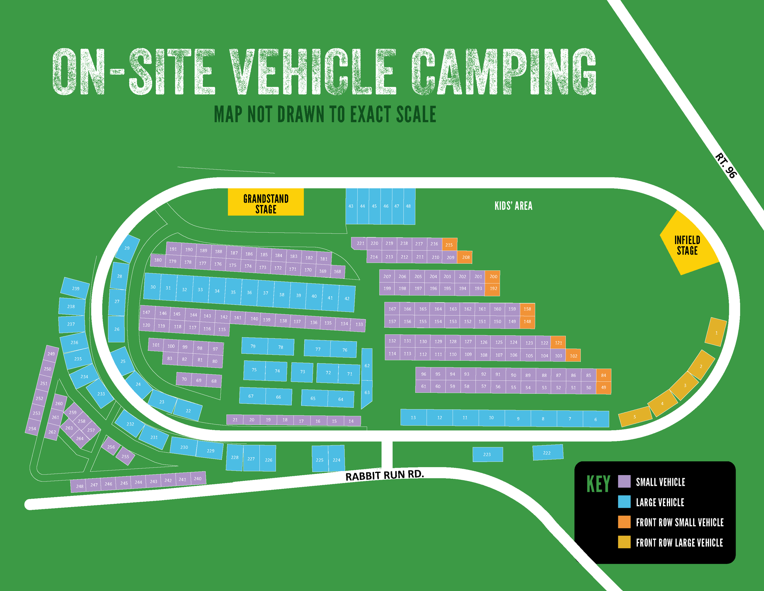 On-Site Vehicle Campers may enter and exit through the BACK GATE on Rabbit Run Rd. only.